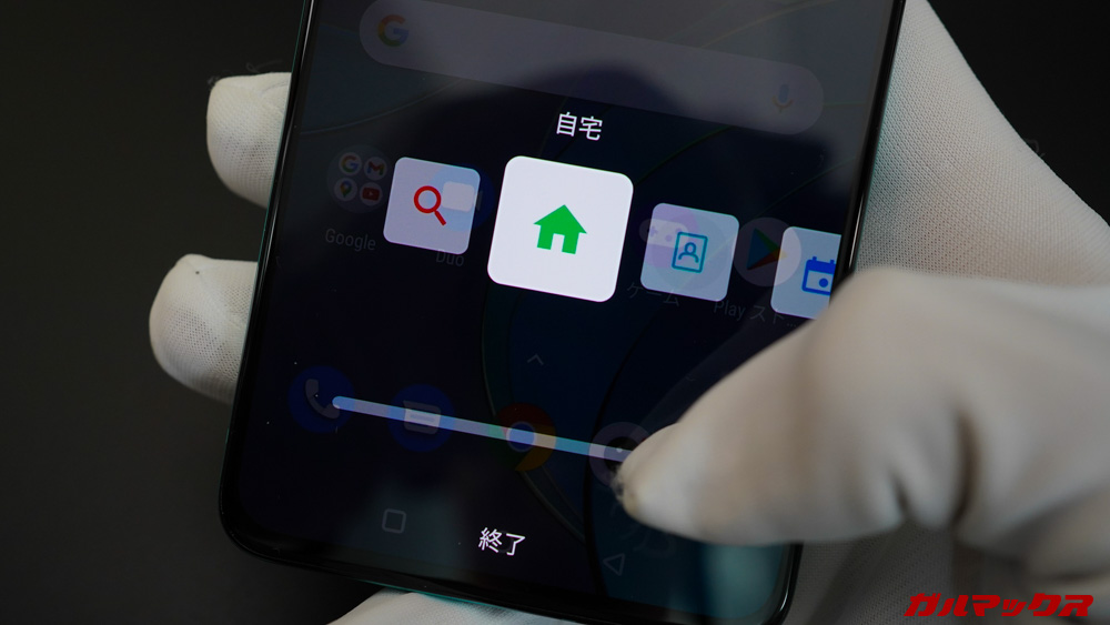 ▼押し続けた場合このメニューが出てきます。なにも起動したくなければ、下の終了に向かって指を持っていけばOK。↓