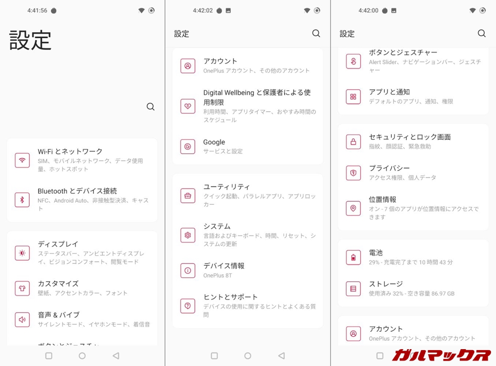 Oxygen OSのバージョンは11.0。ベースのAndroidバージョンは執筆時点で最新鋭の11となっております!