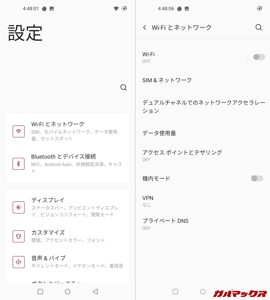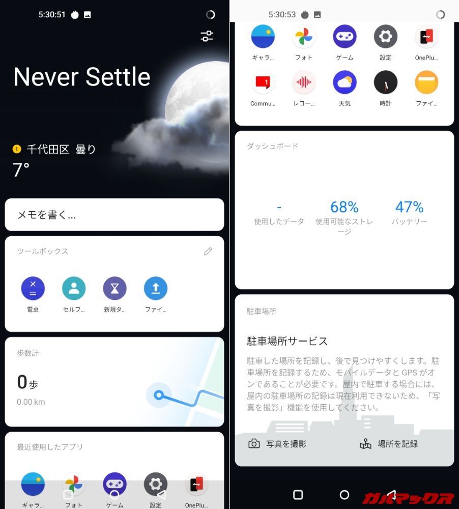 Oxygen OSは純正のAndroid OSをベースに様々なアプリ・機能を搭載、システムの換装を行う「独自OS」の区分に入ります。