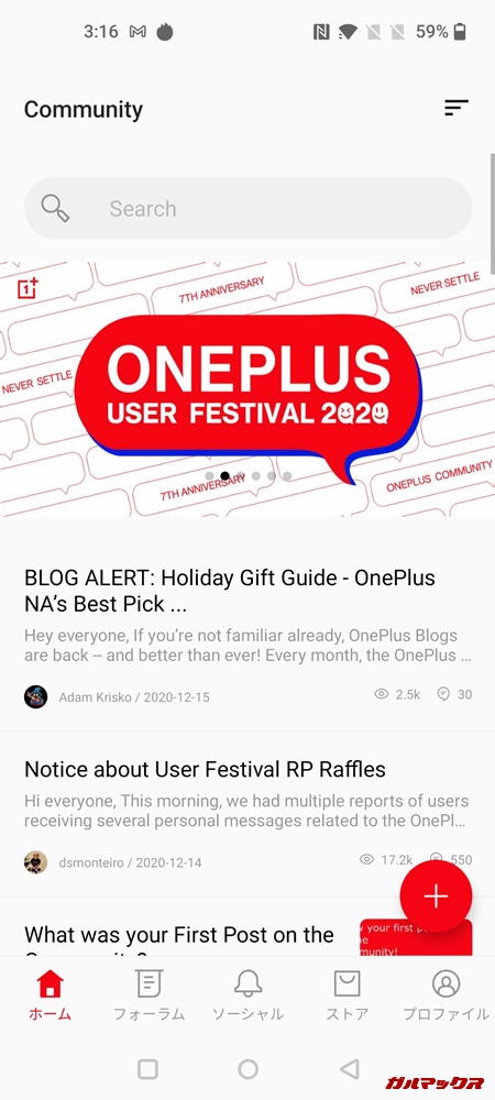 ▼例外として、OnePlus Communityなどの一部のプリインアプリではサイトの方が英語しか対応していないので未翻訳ってぐらい。使わないならアプリを消してもOKです。↓