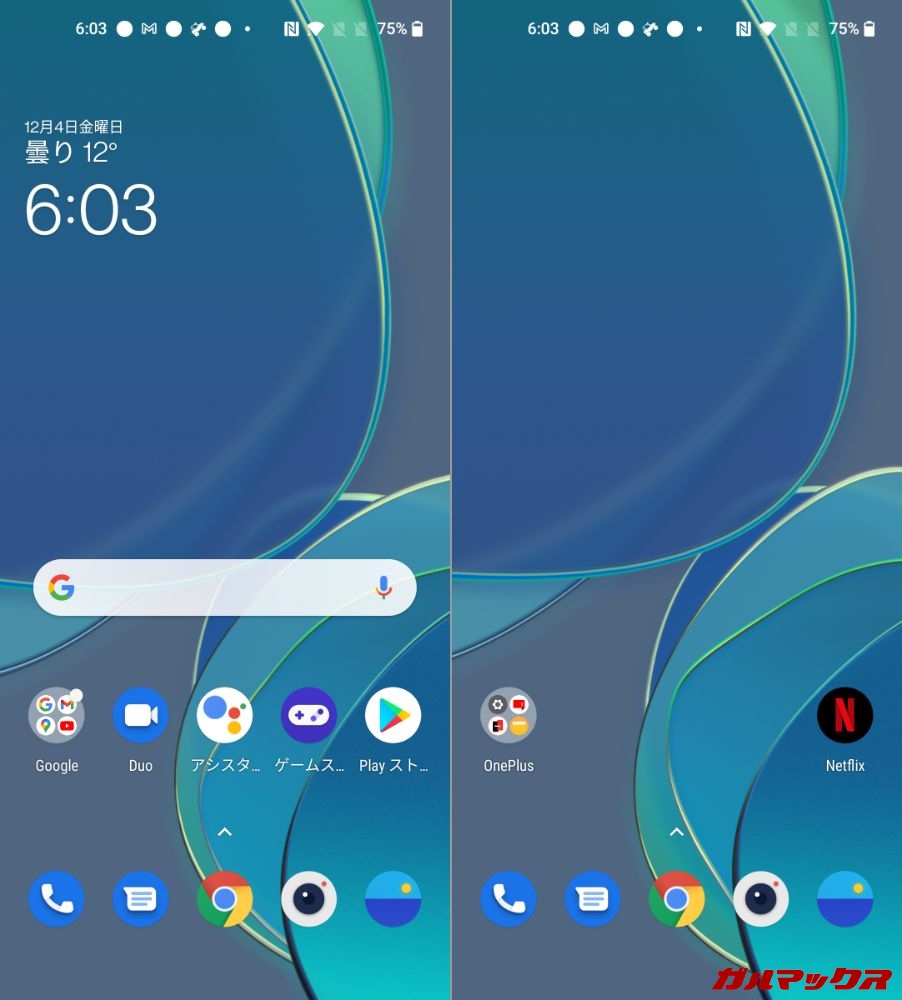 Oxygen OSのアイコンは純正ライクの見た目。一部のデザインはOxygen OSオリジナルですが、少なくとも他の独自OSに比べるととってもミニマルな印象を受けます。それでいて使いやすい!シンプルながら、安っぽさもありません。