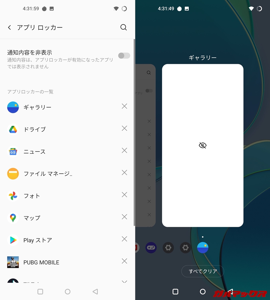 ▼指定したアプリは、アプリ履歴のプレビューからも見られないようにしっかりロックしてくれますよ!↓