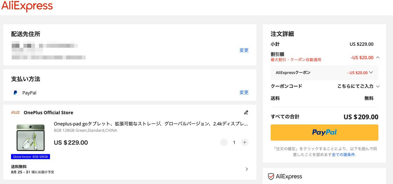 Aliexpressでは日々セール価格が変更されたり色々なクーポンなども適用できたりとその時々によって価格が変動するのが常なので、購入時には価格をしっかりとチェックするようにしましょう!価格がかなり変わってくるので!!