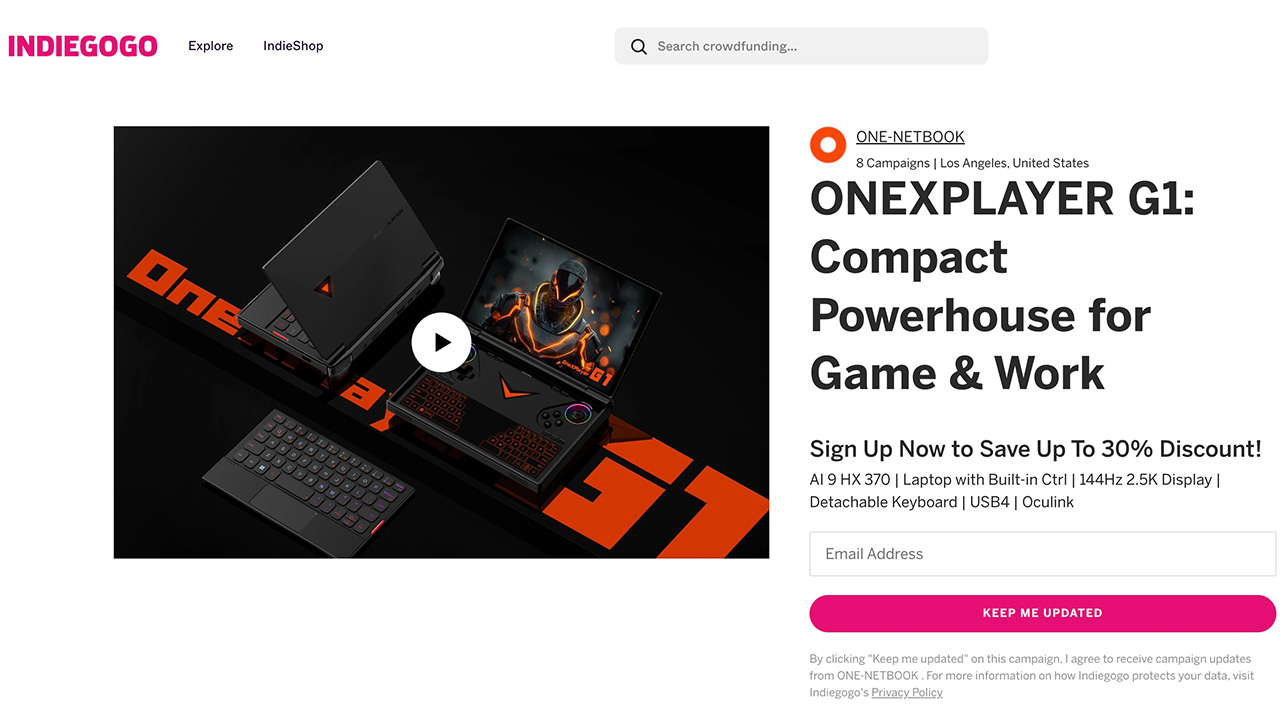 日本でも数多くの携帯ゲームPCをリリースしているOne-Netbookが新型の「ONEXPLAYER G1」がクラファンサイトに登場!もうすぐ出るっぽい!
