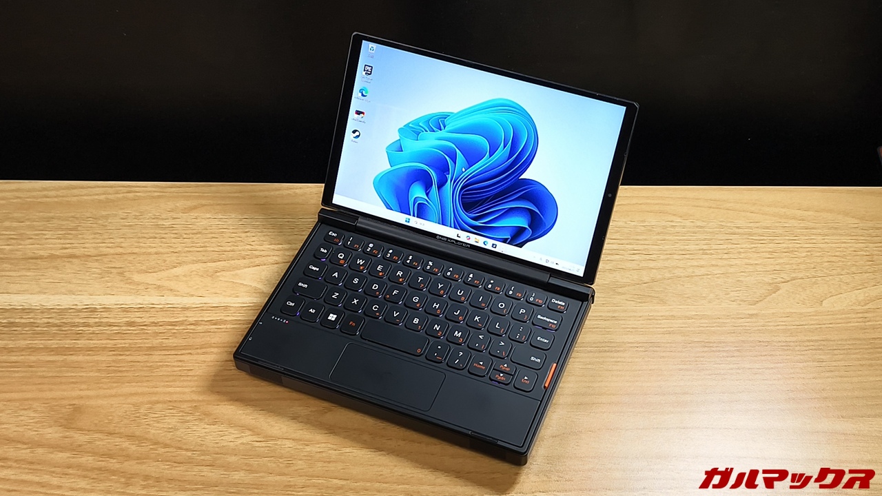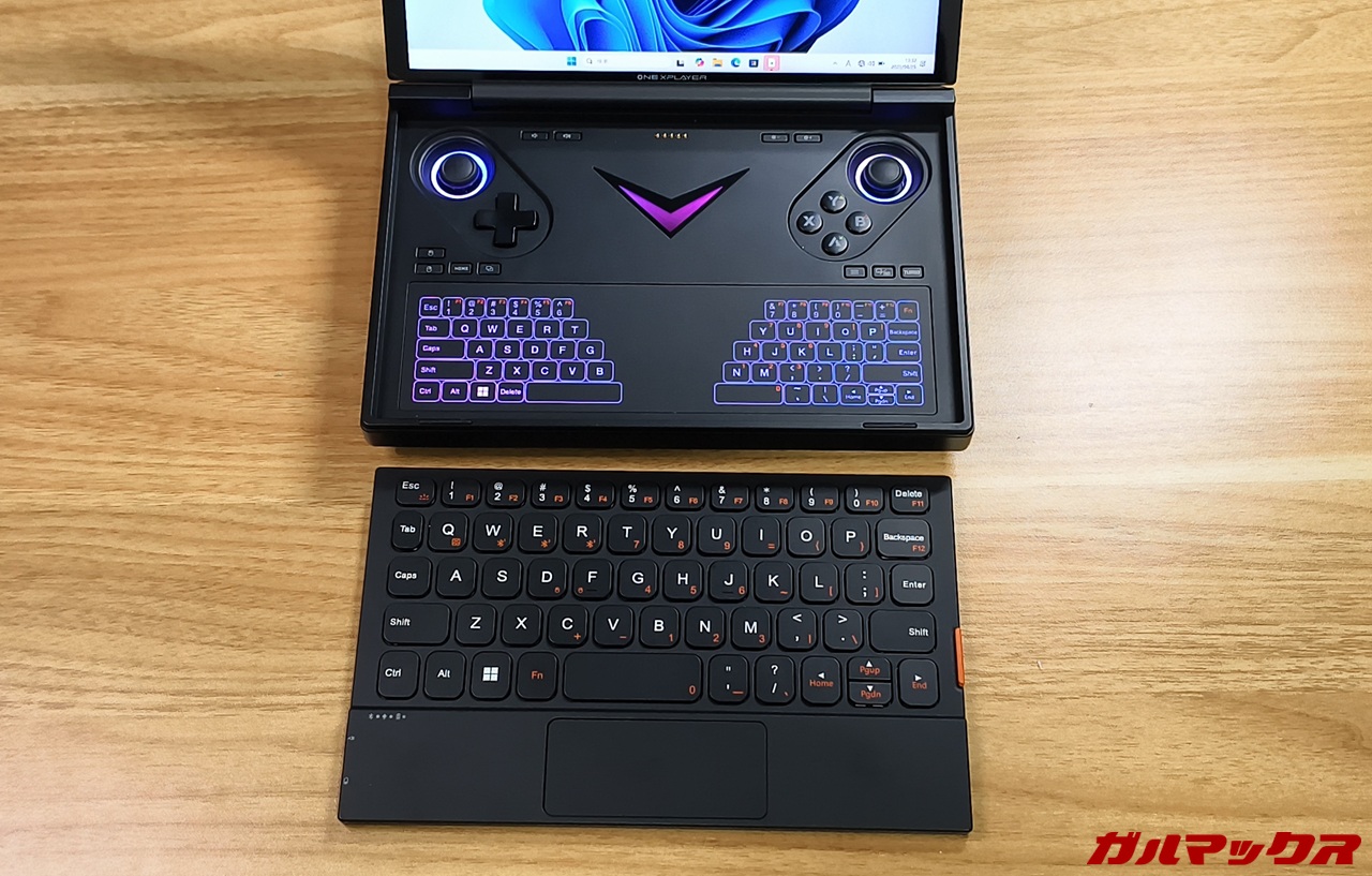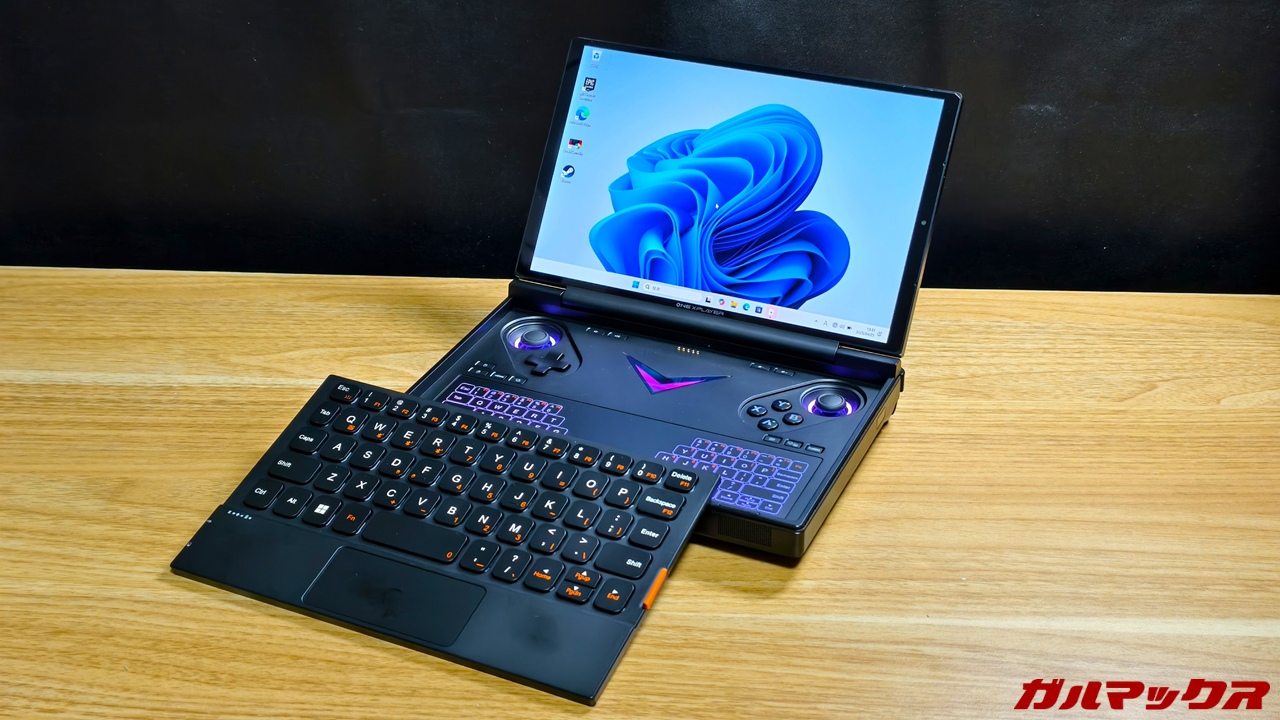 すでに発表記事でご存じの方も多いと思いますが、OneXPlayer G1の特徴といえば小型のノートPCながらコントローラーを突っ込んでいるという点。キーボードも取り外すことができるようになっています。