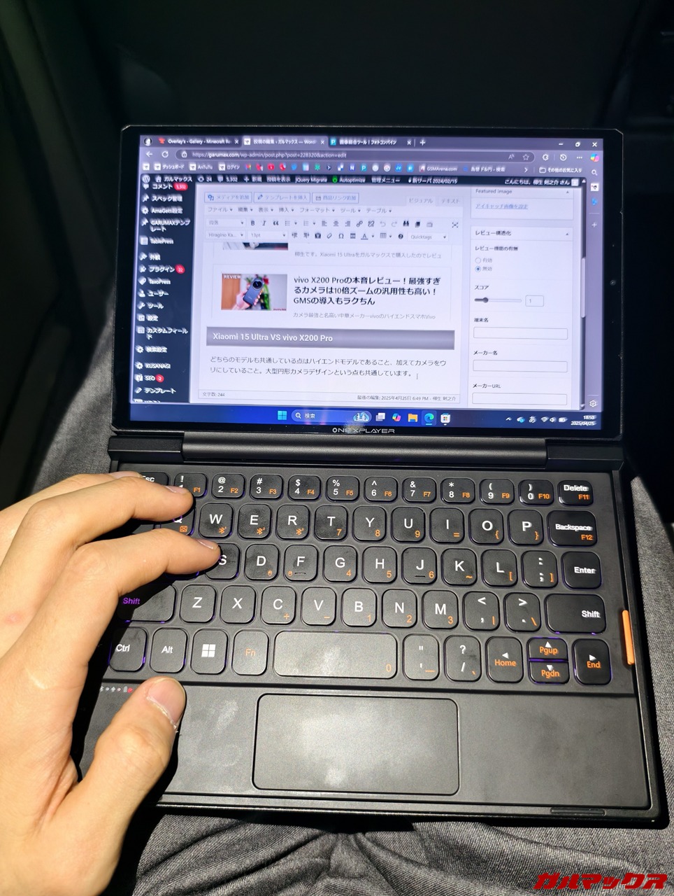 最近までの記事はOneXPlayer G1でチョボチョボ打ってた(タイピングしぬほどおそい)んだけど、熟練するまで結構かかりそうです。もちろんサイズのおかげで場所を選ばないという特権は強みなので慣れたら強力かも。