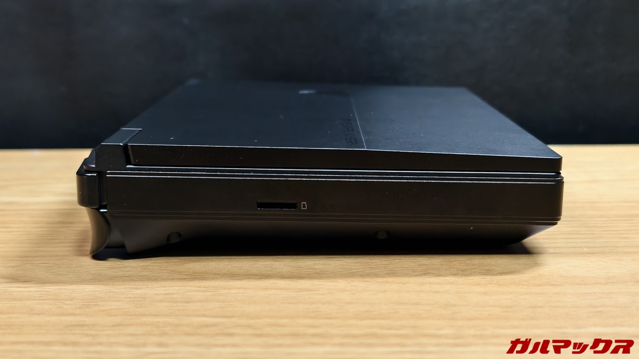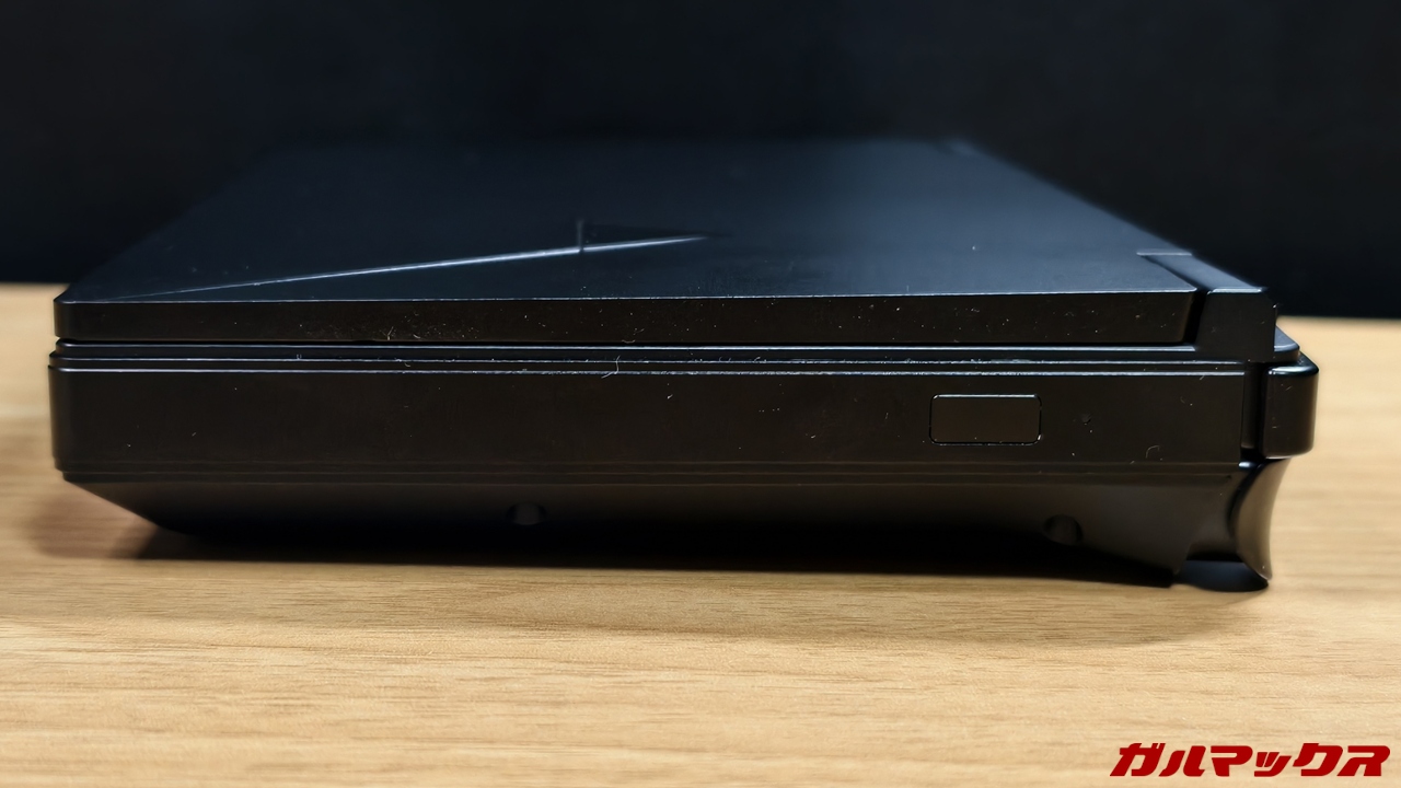 ▼デザインは全体的にカクカクしています。厚みもそれなりにあるので、昔の東芝のノートパソコンみたいな感じがある。小さいけど重厚感は抜群にあります。↓