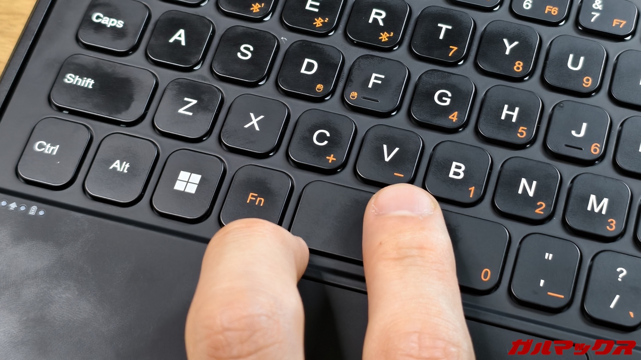 あとこのパッドは「キーボードモード」「タッチパッドモード」という切り替えが必要なタイプなので、共存は出来ません。キーボードモードだとポインタを動かせないので、この点も扱いにくさに拍車を掛けている‥難しい部分です。