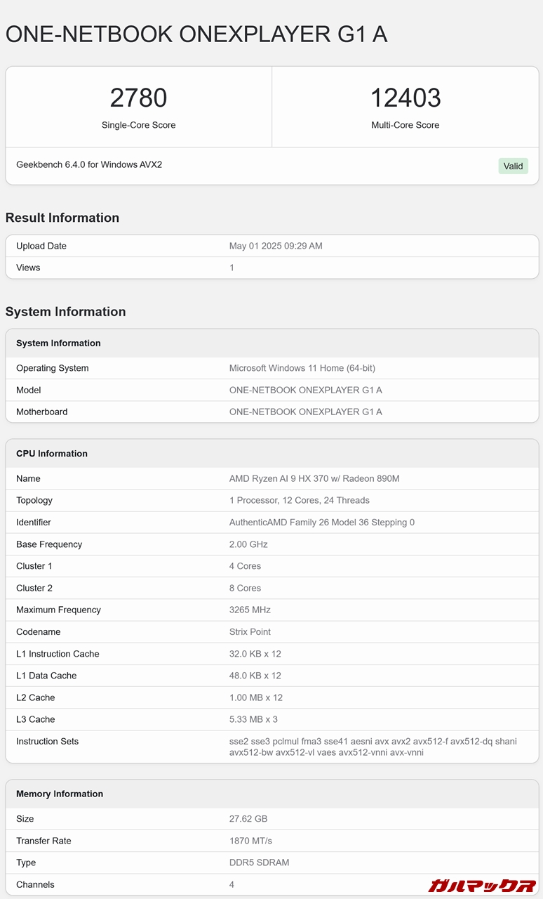 レビューするOneXPlayer G1のCPUはRyzen AI 9 HX 370。この手のゲーミングUMPCが搭載するものとしては現行最高レベルのスペックを持ち合わせます。