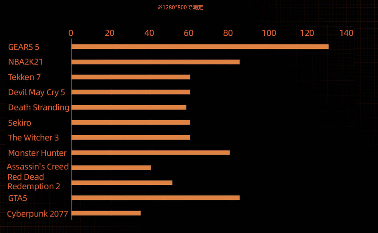 ▼公式サイトに色んなゲームのフレームレート情報があったから載せておく。ちなみに測定は1280×800である。↓