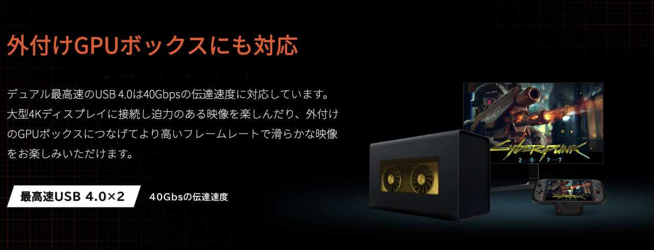 ▼外付けGPUボックスも引き続き対応しているのが嬉しい。↓