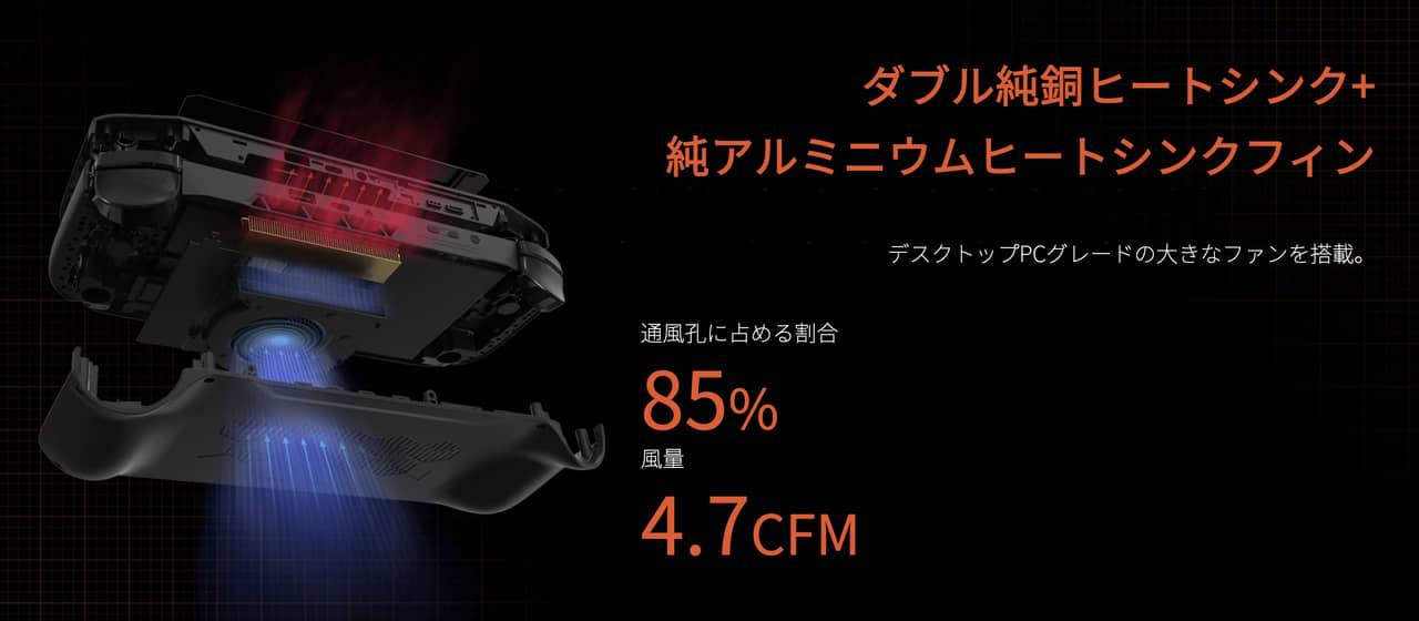 ▼小型化されたがデスクトップPCグレードのファンを搭載しているとのこと。冷却は大事だからな!マジで!↓