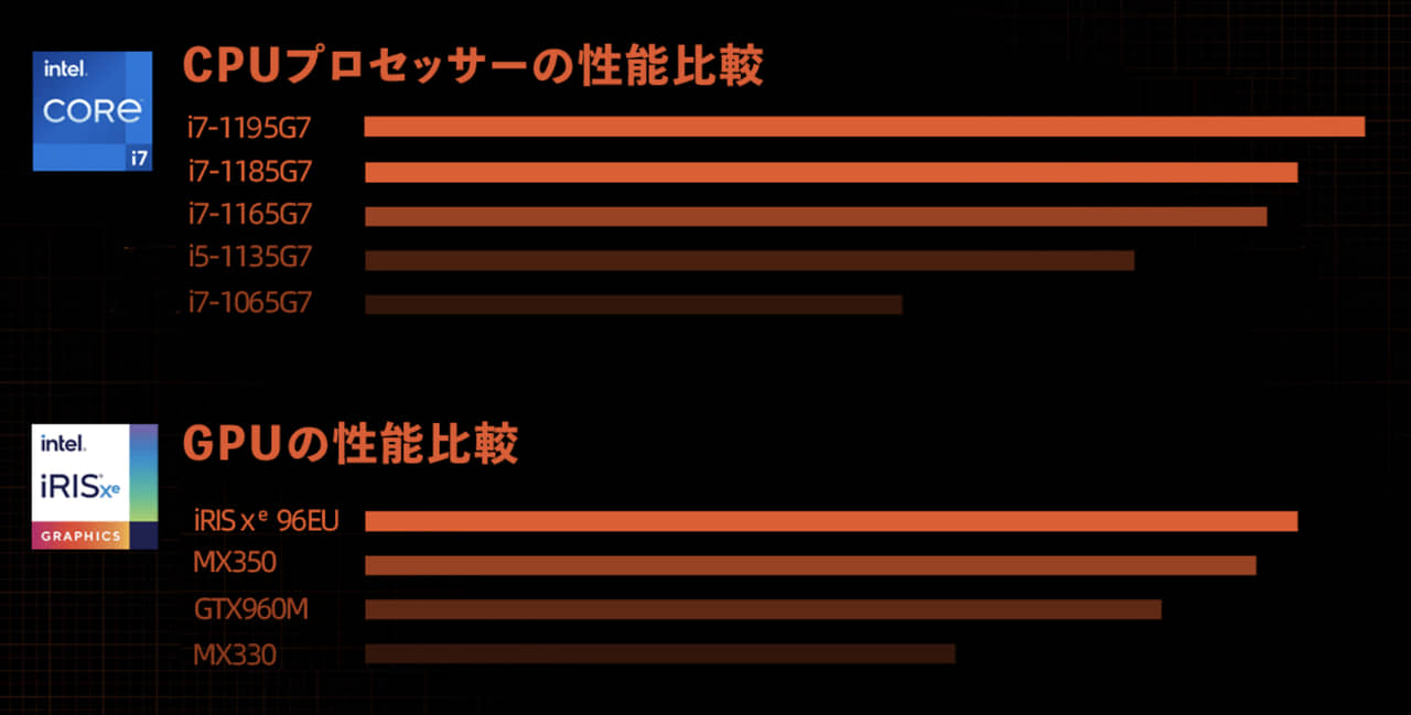 ▼僕が触ったONEXPLAYERは初期モデルだったからCore i7-1165G7だったんだけど、ONEXPLAYER miniはCore i7-1195G7。あの時から処理性能も向上しているなんて素敵。↓
