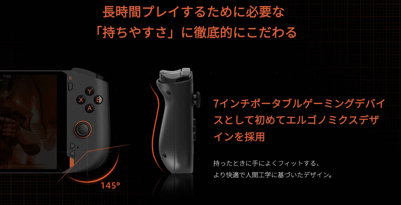 ▼コントローラ関係はONEXPLAYERでも非常に良く出来ていた。小型化したことでホールド感も良くなっているんじゃなかろうか。軽いし長時間プレイも捗りそうだ。↓