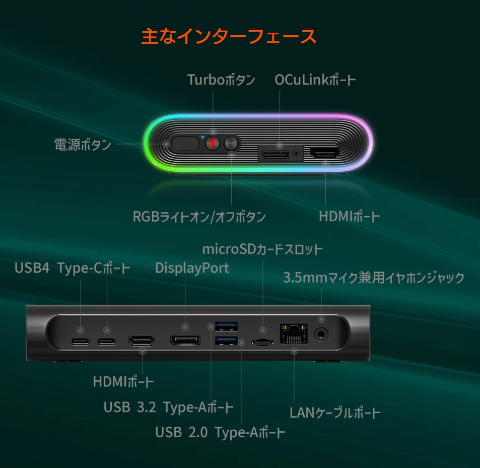 ONEXGPUとつなぐためのOCuLinkポートもあるので、快適かつ本格的なゲームプレイを楽しみたいってときにも応えられる。まさに小さいのにパワーがあって万能って感じがたまらんです(`・ω・´)。