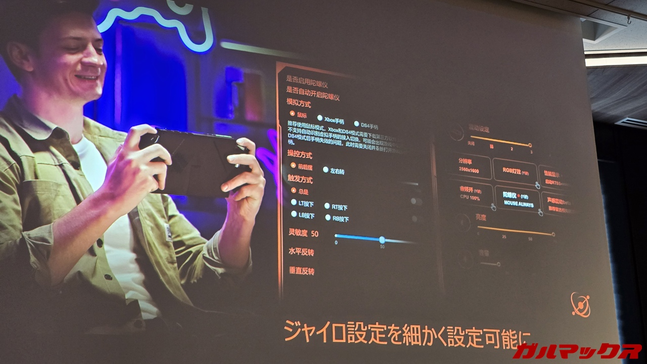 ▼その他、Windows Helloの指紋認証と顔認証のどちらにも対応。またジャイロセンサー内蔵で、設定でより細かくカスタマイズできるとのこと!ジャイロでマウスカーソルを動かせるんだそうです。時間がなくて試せなかったんだけどどういう使い勝手なのか気になる。↓