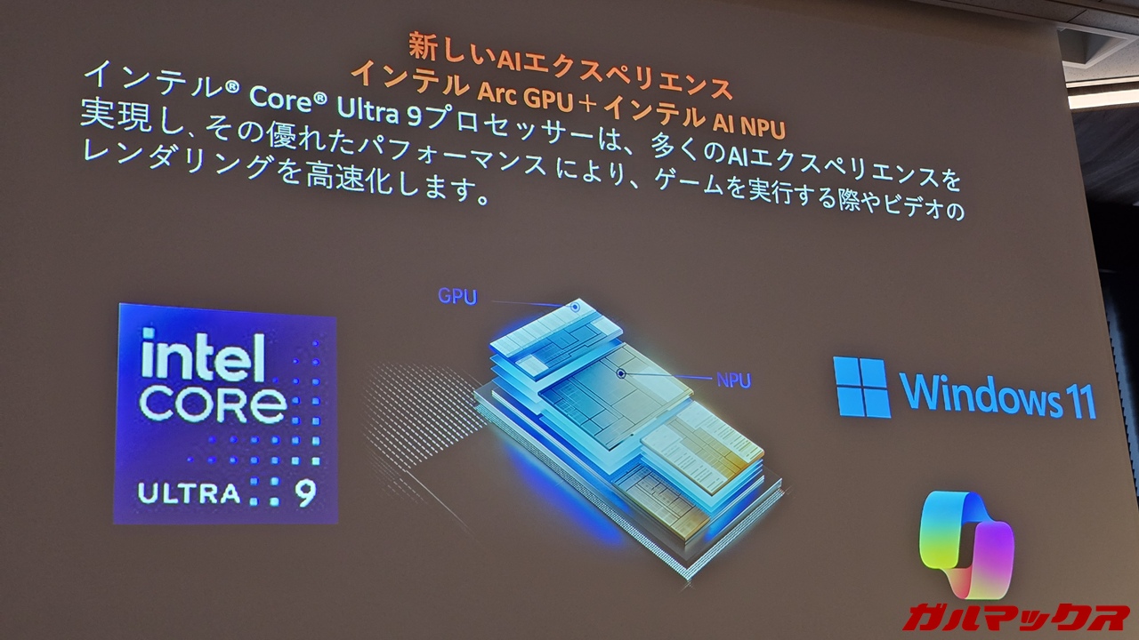 ▼CPUはIntel Core Ultra 9 185Hを搭載!上のONEXPLAYER X1 miniとは打って変わってこちらは仕事向きって雰囲気する。MicrosoftのAI機能を担うNPUもブチ込まれています。↓