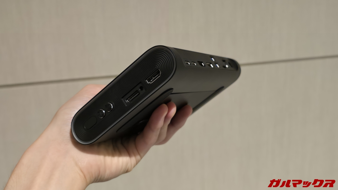 ▼端子類はこんな感じでかなり豊富です。有線もイケるし、DP端子とHDMI端子も完備(1つずつだけど)。Type-C×2も合わせて、合計4つのモニター出力を可能とします。こんだけちっちゃいのにビックリだよネ。↓