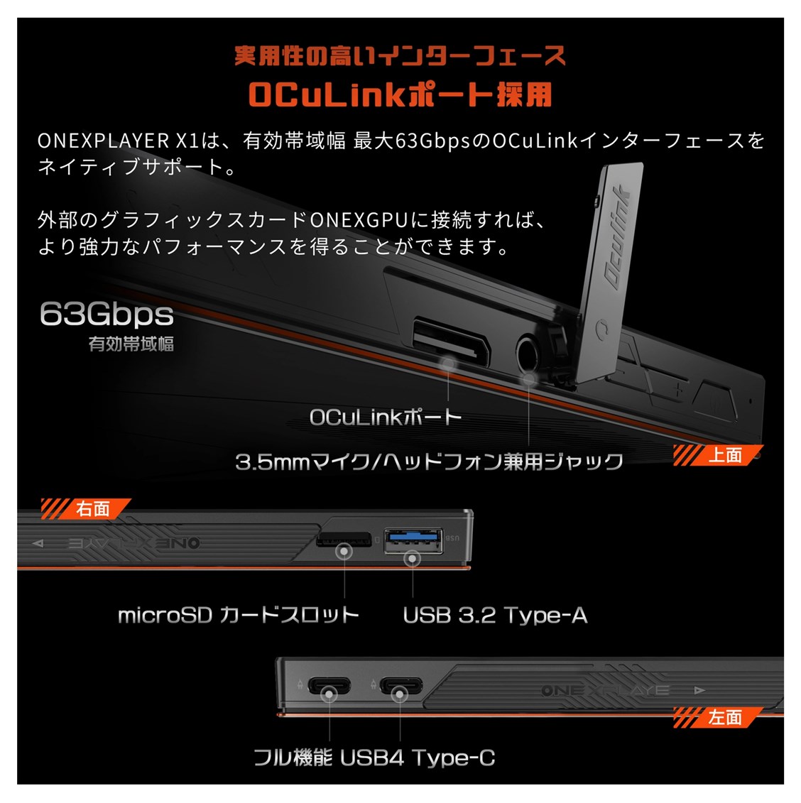 - USB-A×1、Type-C×2、Oculink端子、MicroSDスロット搭載