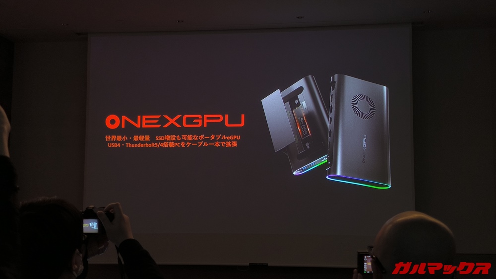 ▼別売りアクセサリーもご紹介。この手のゲーミングモデルでおなじみともいえる外付けGPUも対応!ONEXGPUってやつで、こちらは国内だとONEXPLAYER X1と同時に発売予定となります。↓