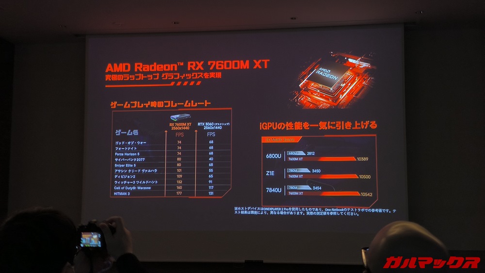 ▼このONEXGPUはAMD Radeon RX 7600M XTを搭載!どんぐらいの性能かというと、なんとデスクトップ用グラボのRTX 3060に匹敵するレベルなんだそうでゲームのフレーム設定は総じて上回っているんすよ。すげー!↓