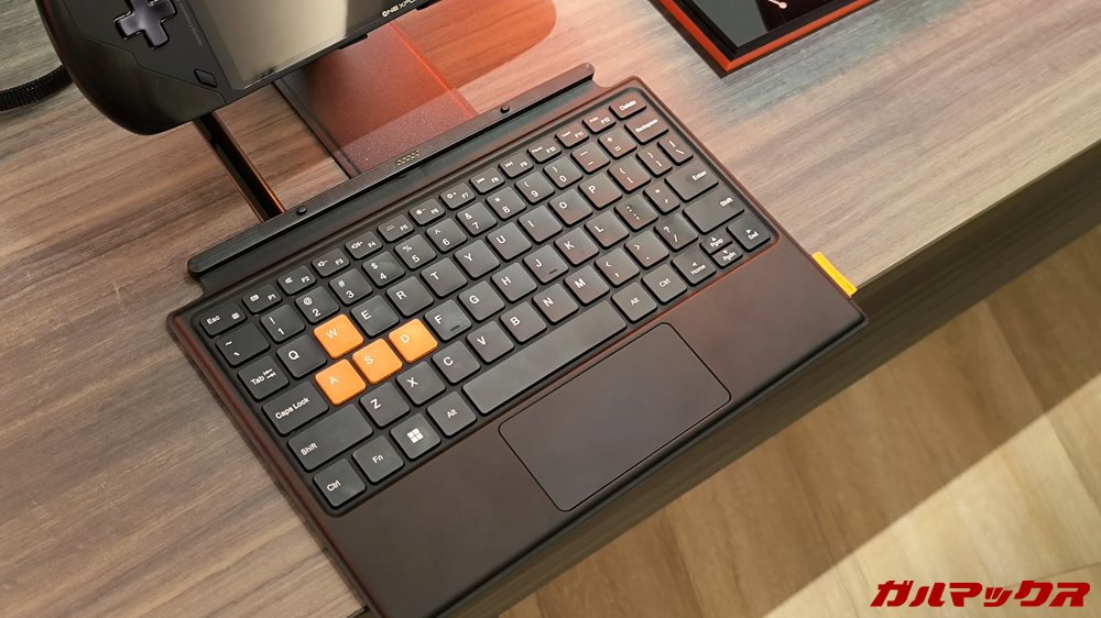 ▼キーボードは英語配列。ベースはブラックですが、WASDキーのみオレンジとなっておりゲーミングらしい風合いっすね。↓