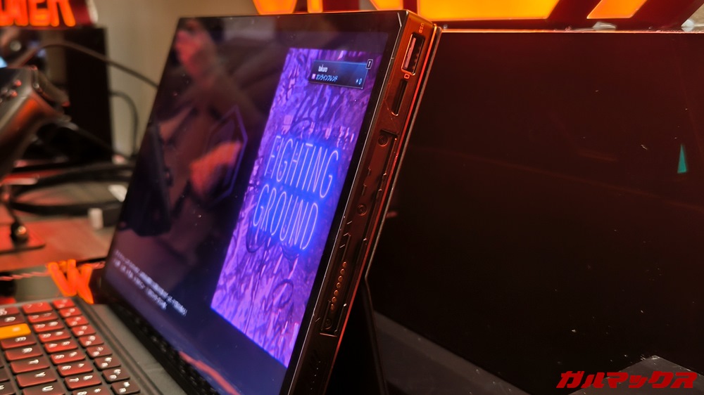 ▼特筆すべきはやはりディスプレイ。この手のモデルとしてはかなり大きな10.95インチ!ラップトップタイプでも使えるとはいえ、ハンドヘルドとして考えるとかなりのデカさ。タブレットと考えても結構ボリューミーです。↓