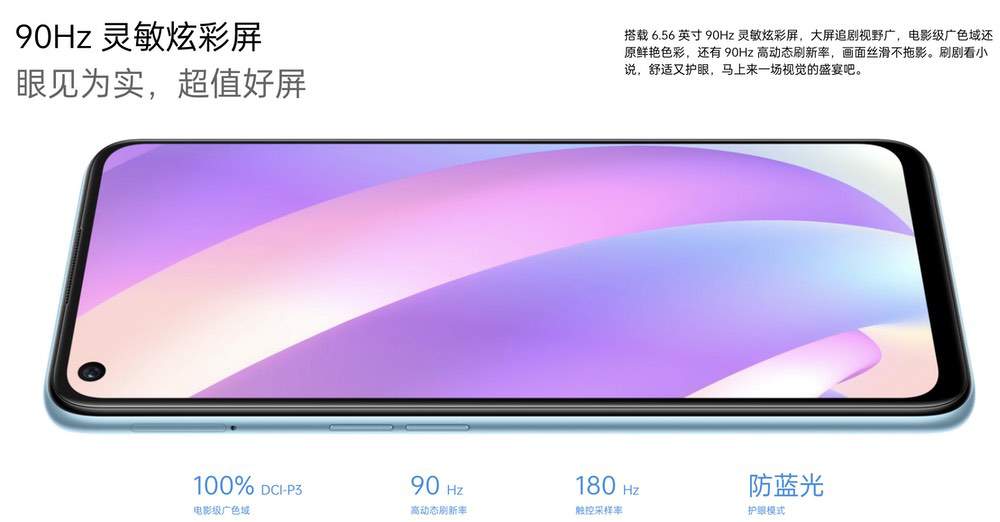 ▼ディスプレイは6.56型のHD+と解像度はやや低いですが、リフレッシュレートは最大90Hzに対応しており、滑らかに表示できるのが魅力!↓