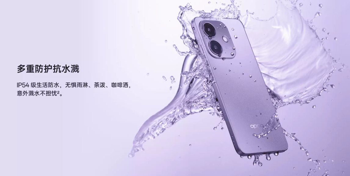 ▼IP54の生活防水に対応しているので水濡れに強いのも特色!日本でもOPPO A3 5Gという似たモデルが出ておりますが、そちらと同様に耐衝撃設計になっており見た目に反して結構頑丈。1.5mから落としても割れにくいとのこと!↓
