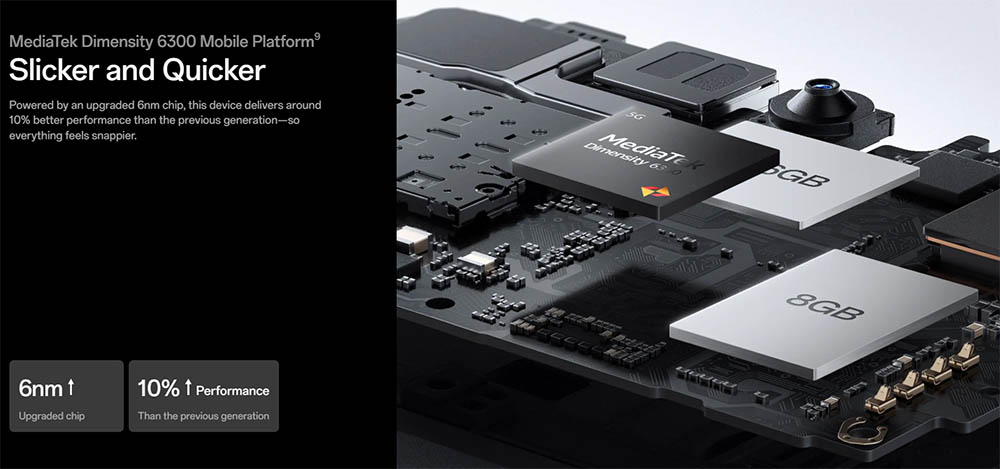 SoCにはDimensity 6300、メモリは4/6/8GB。