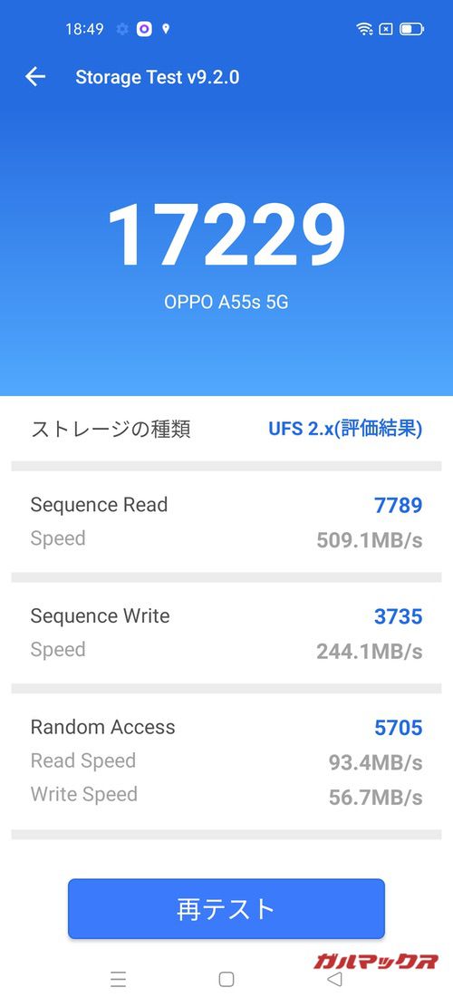 ▼ストレージ速度は読み込みが509.1MB/s、書き込みが244.1MB/s。値段なりの速度だわ。↓