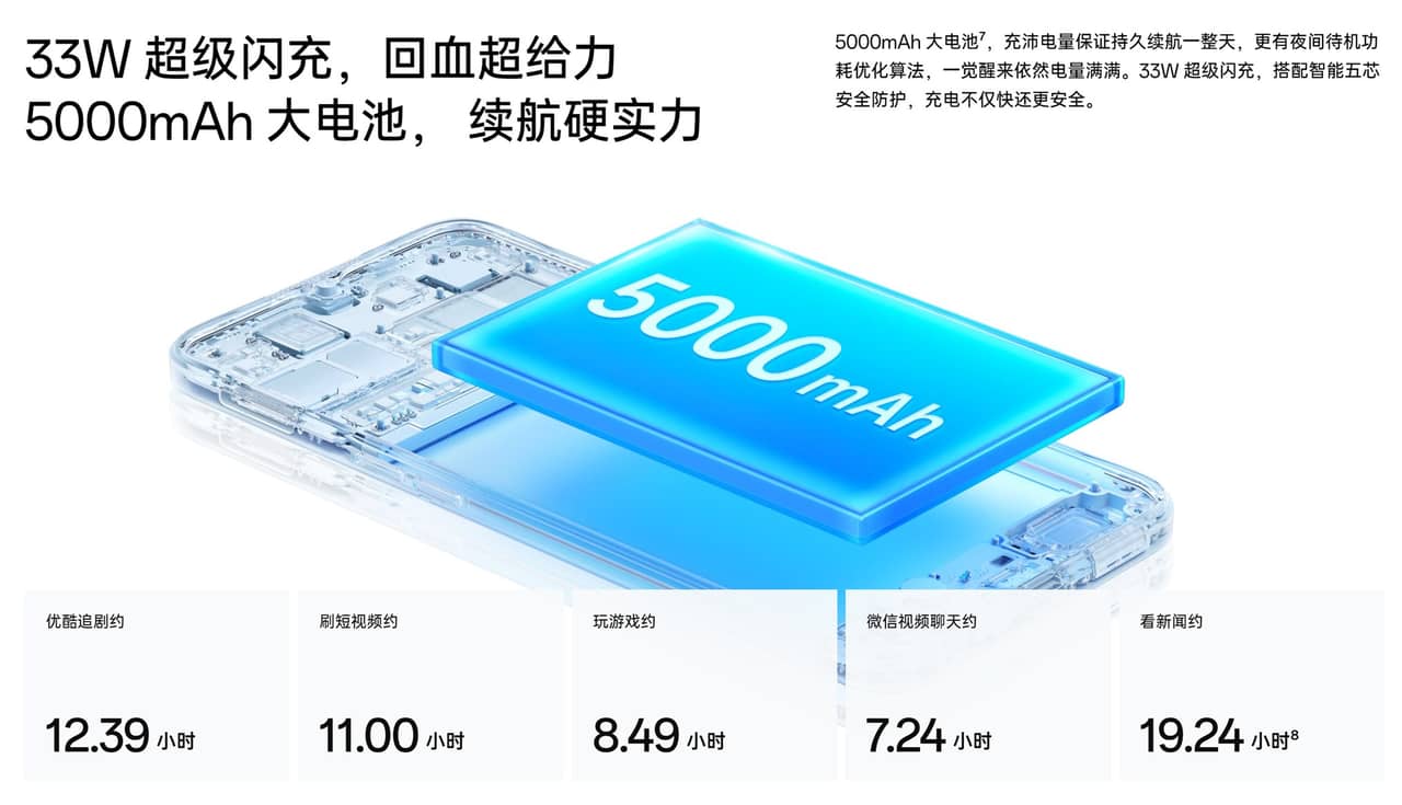 ▼バッテリー容量は5,000mAhと大容量で電池持ちが良く、さらに33Wの急速充電にも対応!充電も速く、電池周りのスペックはバッチリ決まっているのが魅力ですね(`・ω・´)。↓