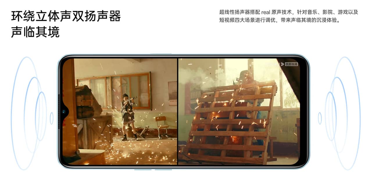 ▼ディスプレイは水滴ノッチ、解像度はHD+クラスとなっていますが、最大リフレッシュレートは90Hz表示に対応しておりなめらかなスクロール表示が味わえるようになっています!↓