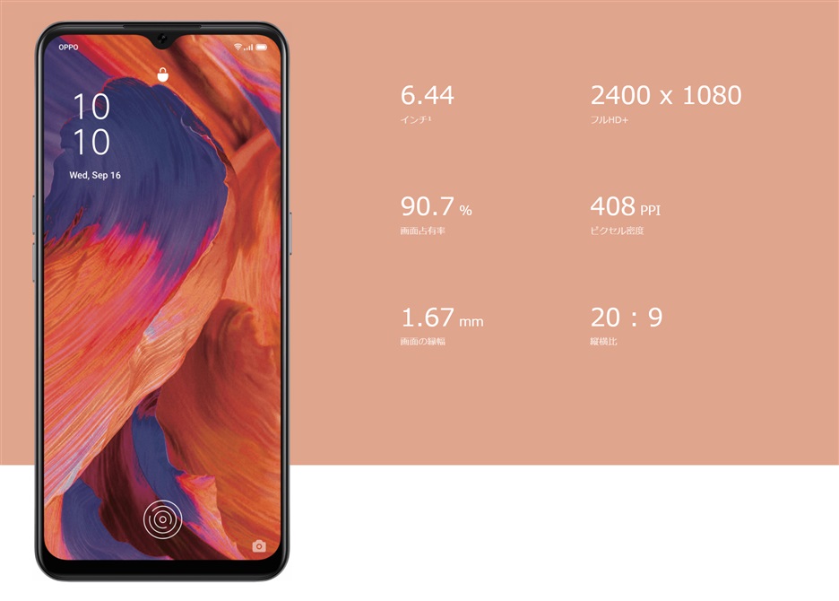 ディスプレイ 6.44インチ/有機EL/画面占有率90.7%