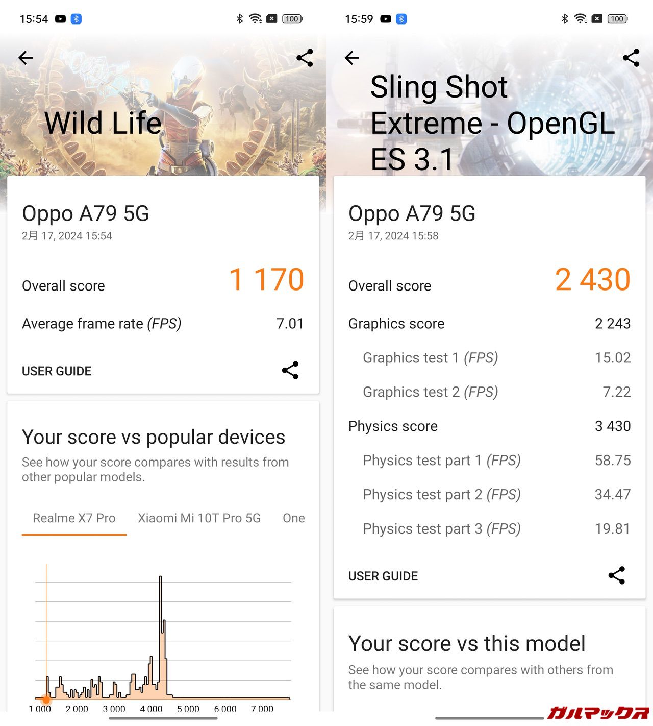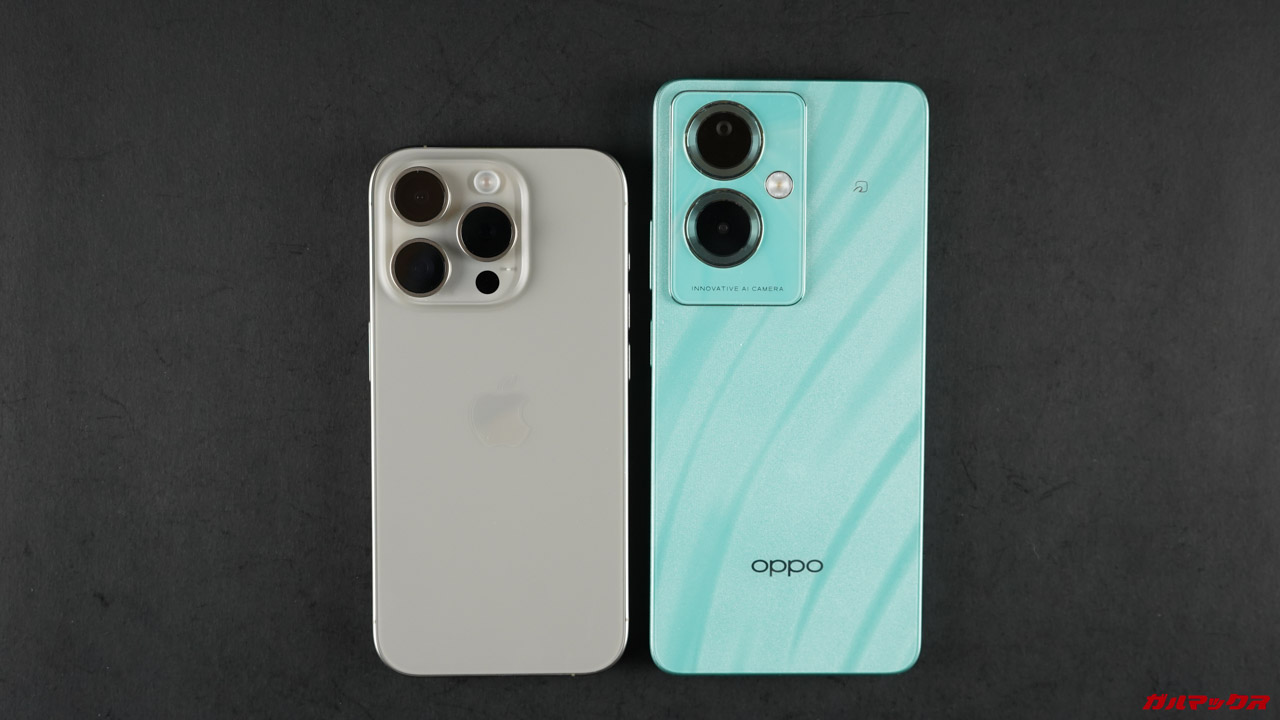 ▼こっちも左がOPPO A79 5Gで右がiPhone 15 Pro。↓