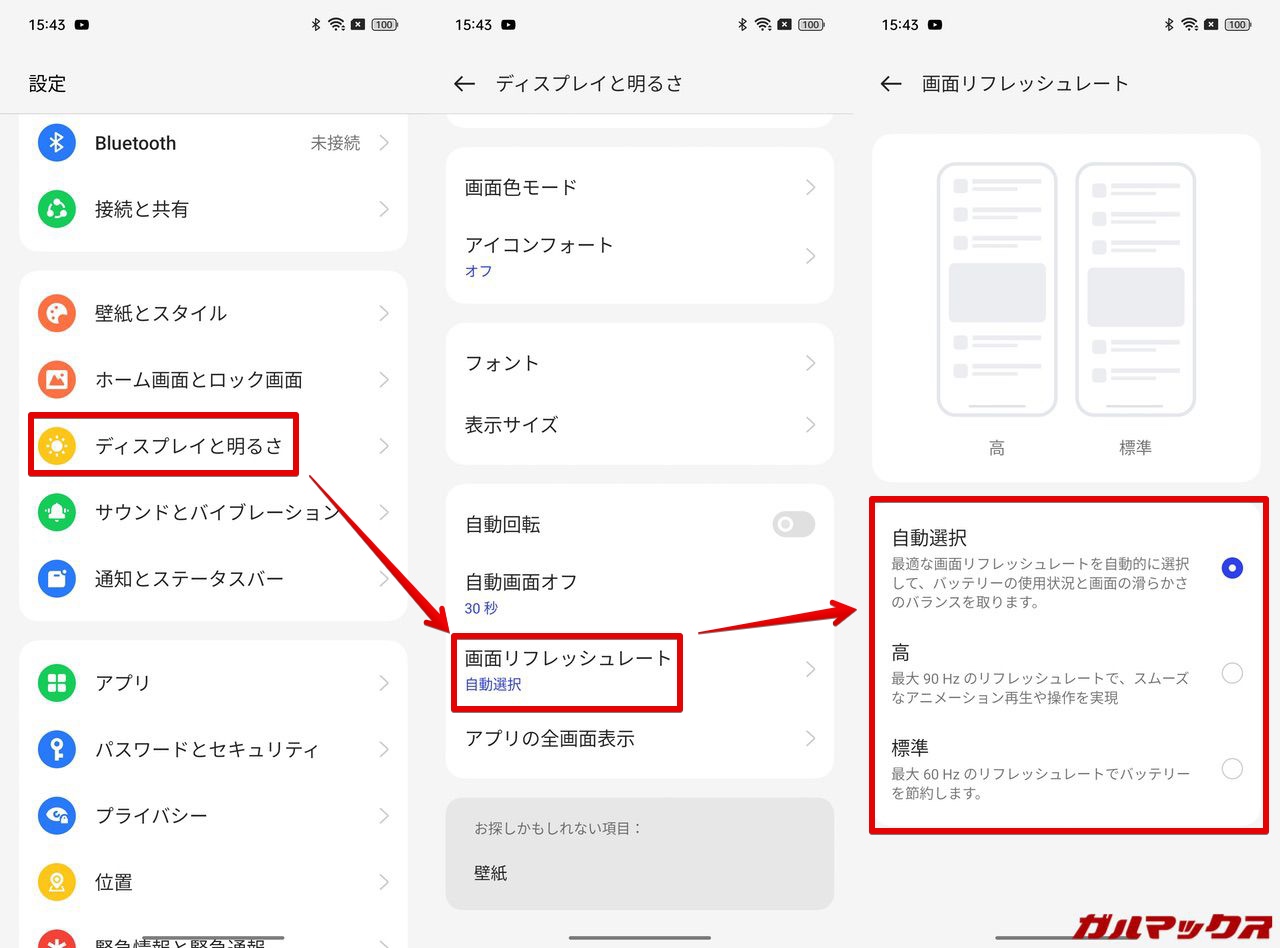 ちなリフレッシュレートを90Hzに固定すると消費電力が高くなる。つまり、電池の減りが早くなるのだ。