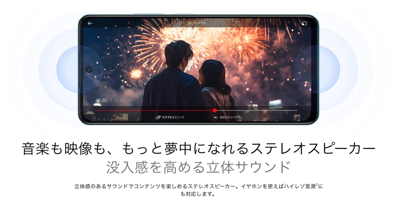 ディスプレイもFHD+とスマートフォンとしては標準的な解像度になったし、スピーカーもステレオだし、OPPO A77よりもワンランク高い映像体験ができそう。