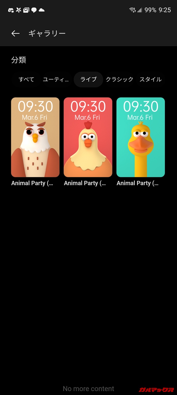 ▼ライブ壁紙(動く壁紙)自体はあるんだけど3種類しかなく、その3種類は微妙にキモい畜生共だけっていう謎センス。しかもアニメーションっつっても瞬きするだけでした。微妙すぎる。↓