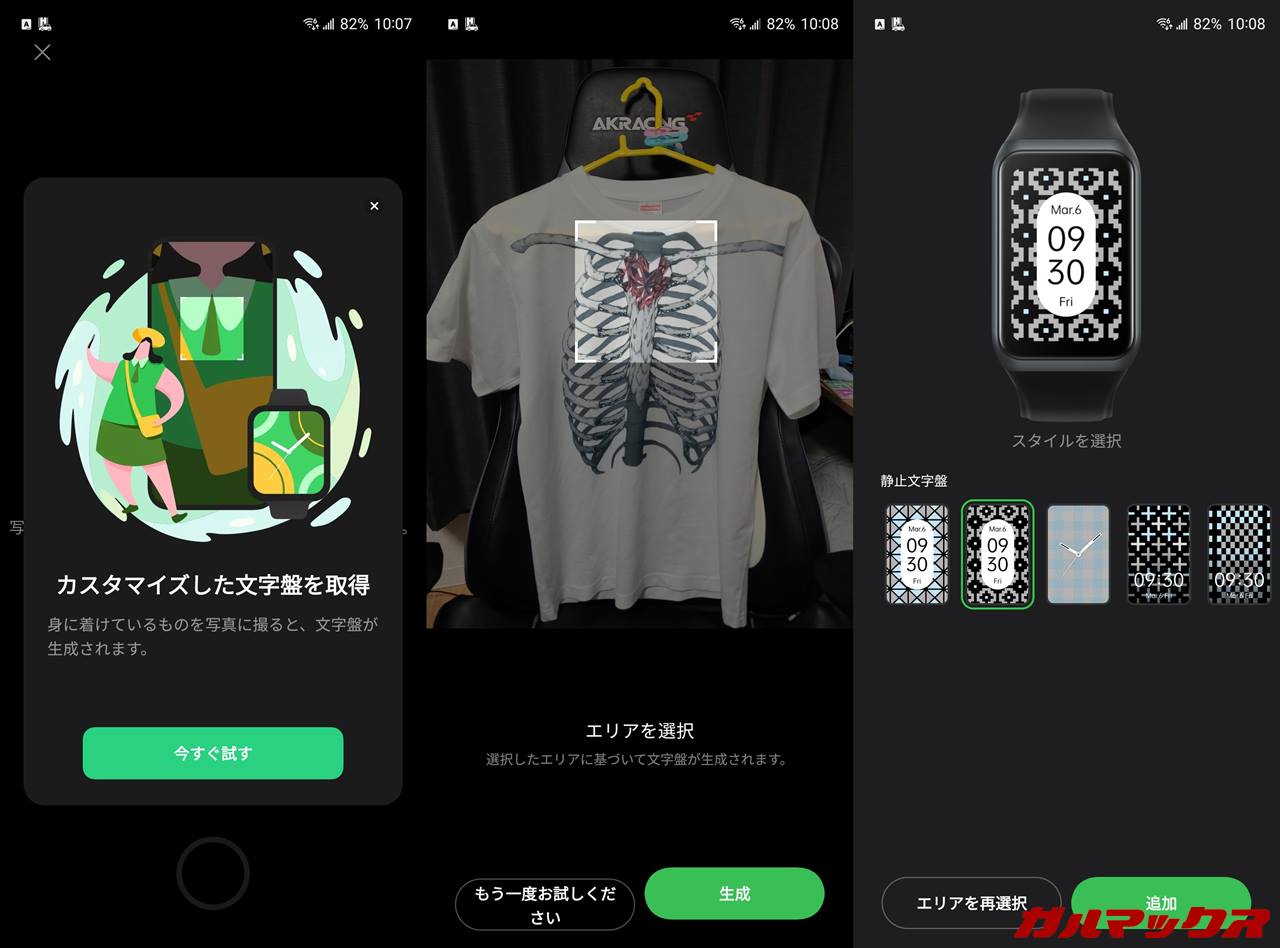 ▼ちなみにFree同様にAIコーディネートにも対応していました。服をスマホで撮影することで、その服と同じ色やアクセントカラーを自動で割り出して文字盤にするっちゅうOPPOらしい独自機能。↓