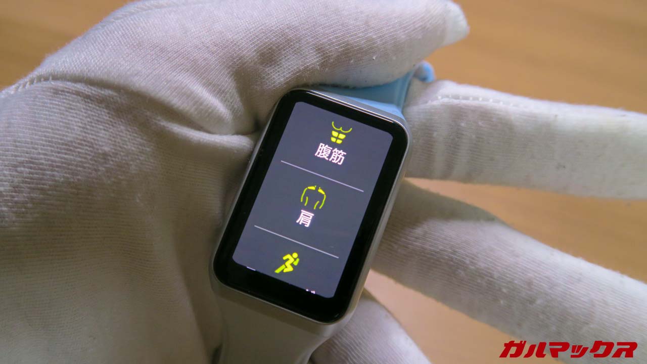 ▼それはさておき、これ驚いたのが腹筋とか背筋とか首とか、局所を鍛えるトレーニングの測定にも対応しているんですよ。これに対応しているモデル初めて見たよ!あと犬の散歩もあった。マジですげーラインナップ。↓
