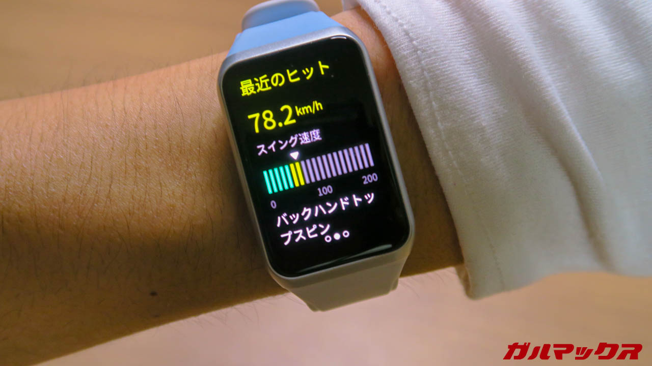 ▼またテニスなどの球技であればスイング数やスイングスピード、スイングの種類も測定可能。これは公式サイトでも結構アピールされてただけあってこだわってるな~って感心。筆者はテニスやったことないんですが‥テニス好きな友人にもオススメできそうだ!↓