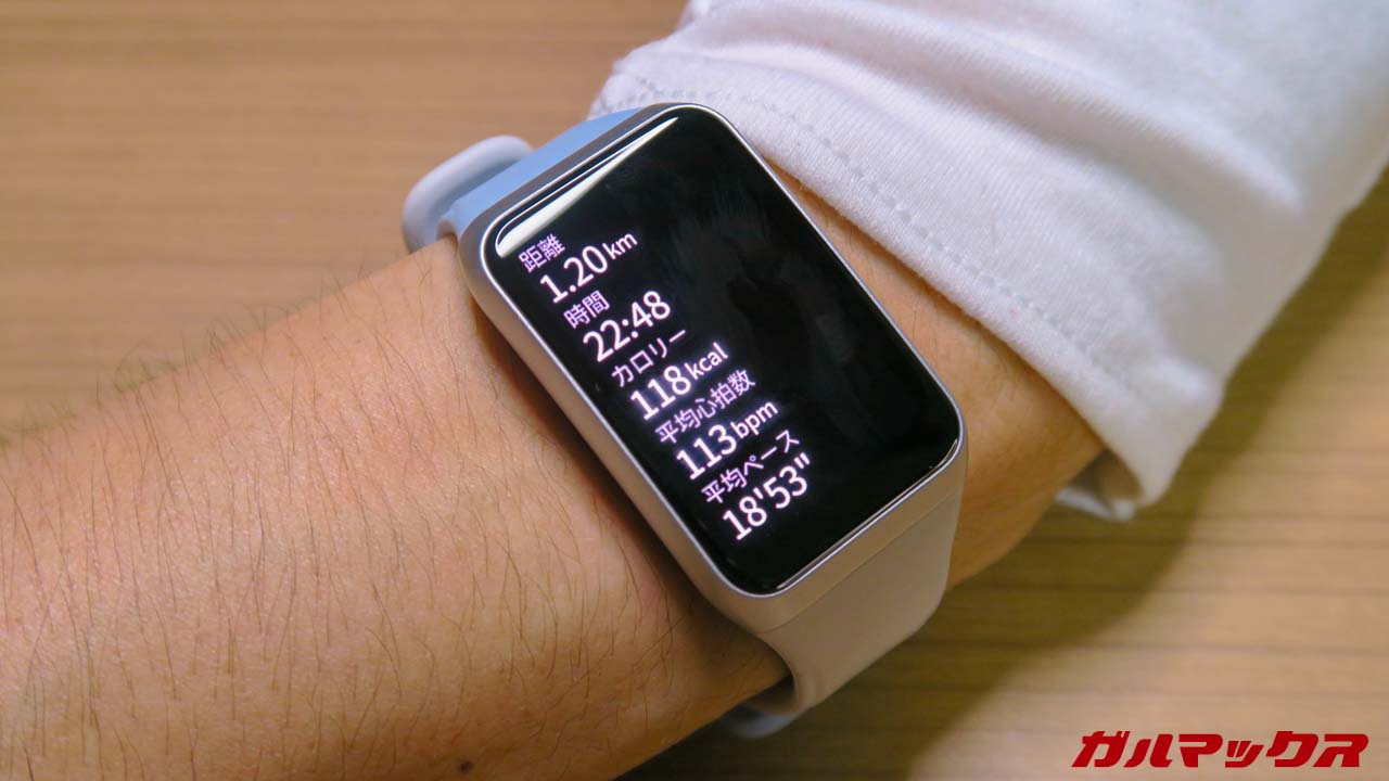 あとは長時間歩いたり走ってると自動で検出して測定モードに切り替わってくれます。この機能自体は色んなスマートバンドにもあるんだけど、その開始タイミングの精度もバッチリでした。