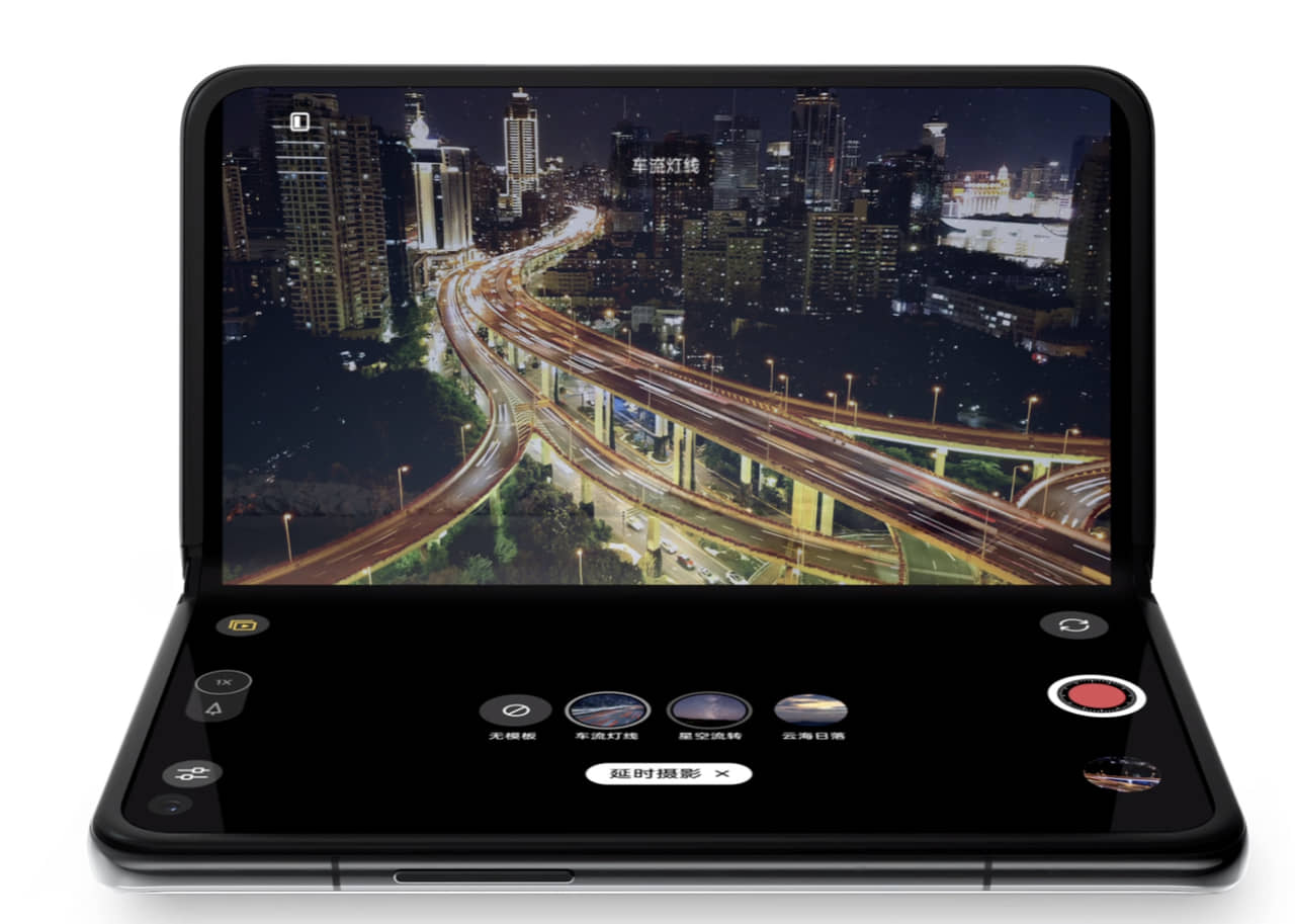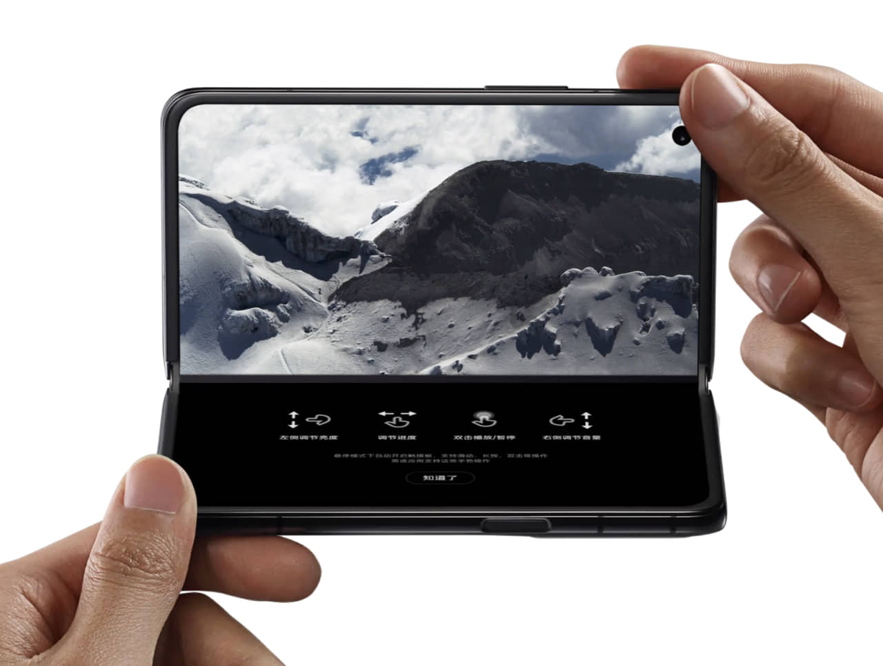 ▼例えば、映画を見るときは下部に操作パネルが表示されたり、カメラ撮影ではスタンドなして自立撮影できたりと、折り畳みスマホの使い勝手の良さを感じられる使い方はOPPO Find Nでも体験できそうです。↓