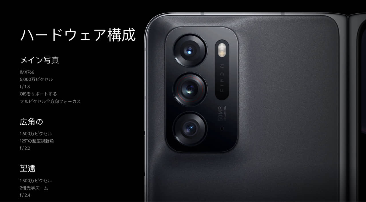 ▼カラーは白と黒以外にオーロラっぽいカラーもあるみたい。デザインはカメラの出っ張り部分とボディーが滑らかに繋がっていて、OPPO Find X3 Proに似ている感じ!↓