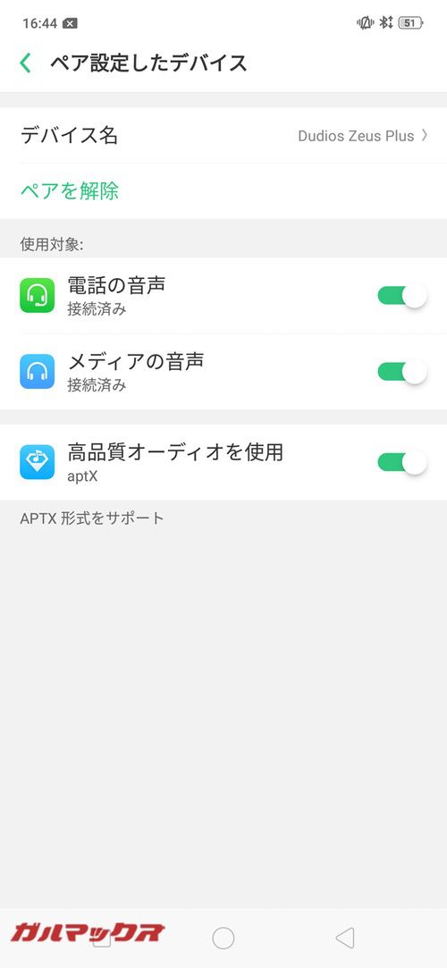 | apt-X HD | ☓ | 超高音質&低遅延コーデック 対応機種が少ない |