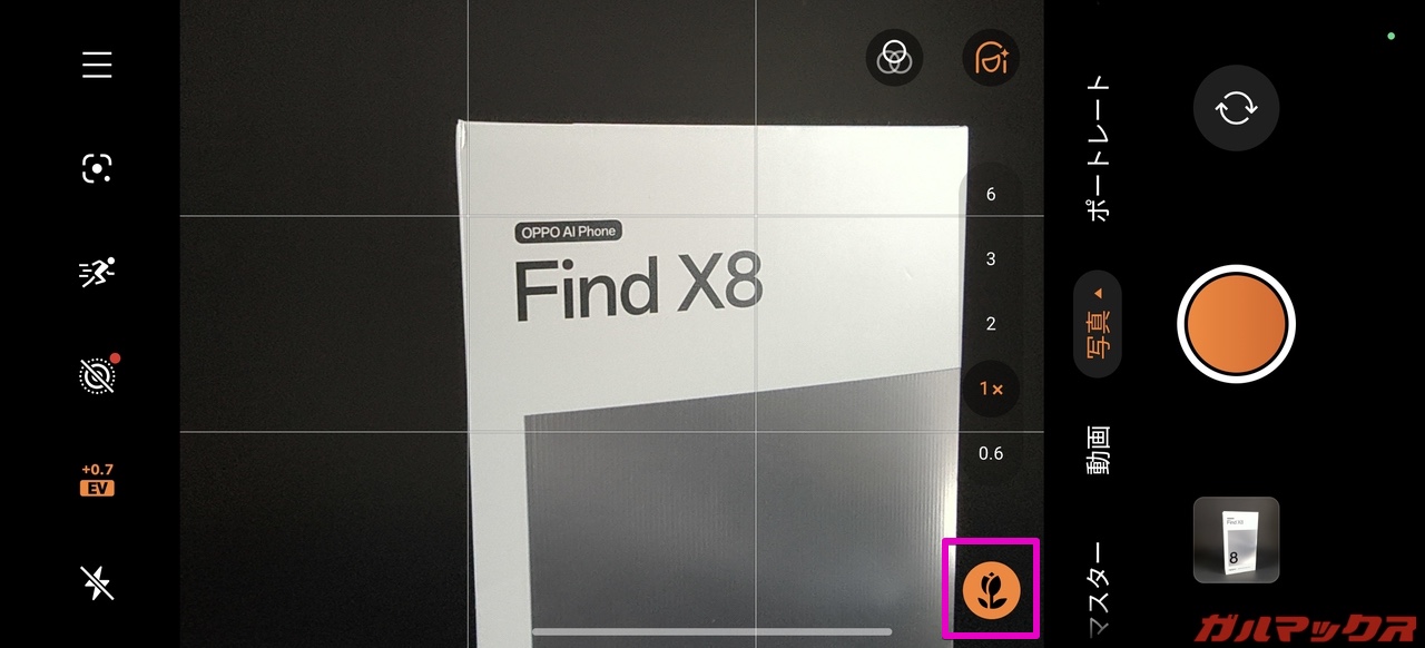OPPO Find X8は広角、超広角、望遠の3つのカメラを備えているんですけど、撮影距離によっては勝手にレンズが変わります。最近のスマホだとよくある挙動ですねぇ。