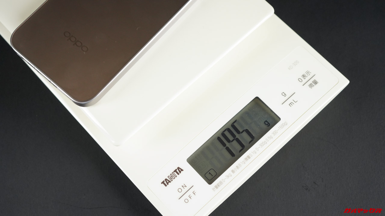 ▼重量は実測で195g。6.6型だとこんなもんかな?とも思ったんですが、これ、バッテリー容量が5,500mAhを超えてるんですよ。それを加味すると相当スリムに仕上げてきたなって感じですねぇ。↓