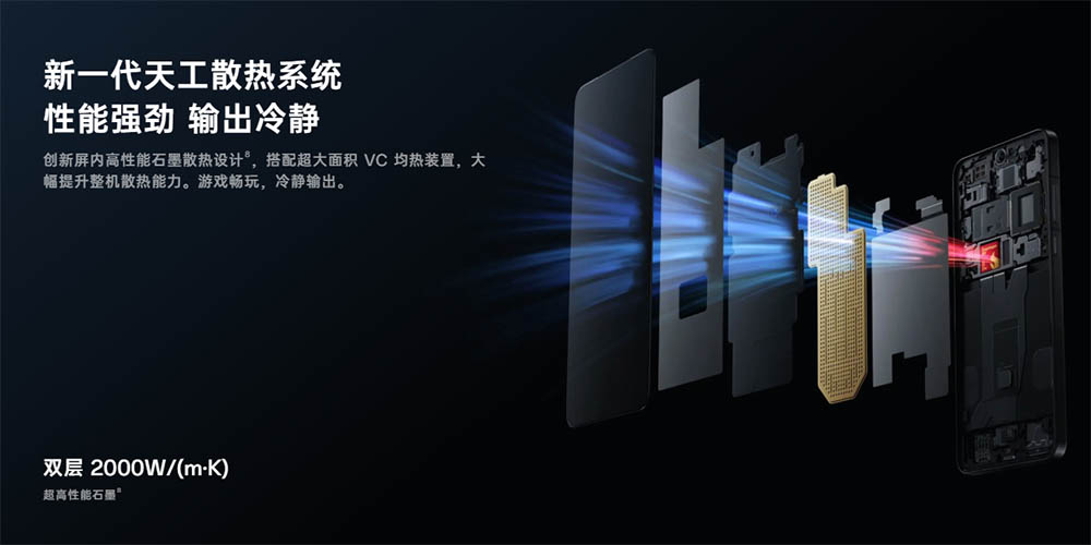 ▼冷却性能も十分。大型ヒートスプレッダと高性能なグラファイト放熱設計を搭載しています。↓