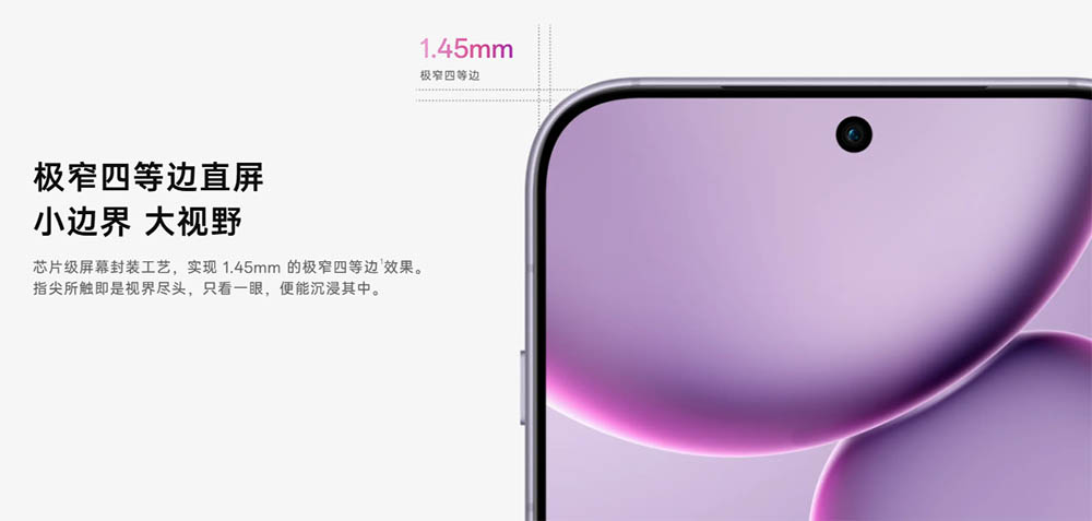 ▼ベゼル幅はFind X8と同じ1.45mm。ライバルポジションのiPhone 16 Plusは約2.3mmなので、かなり頑張っていると思います。↓