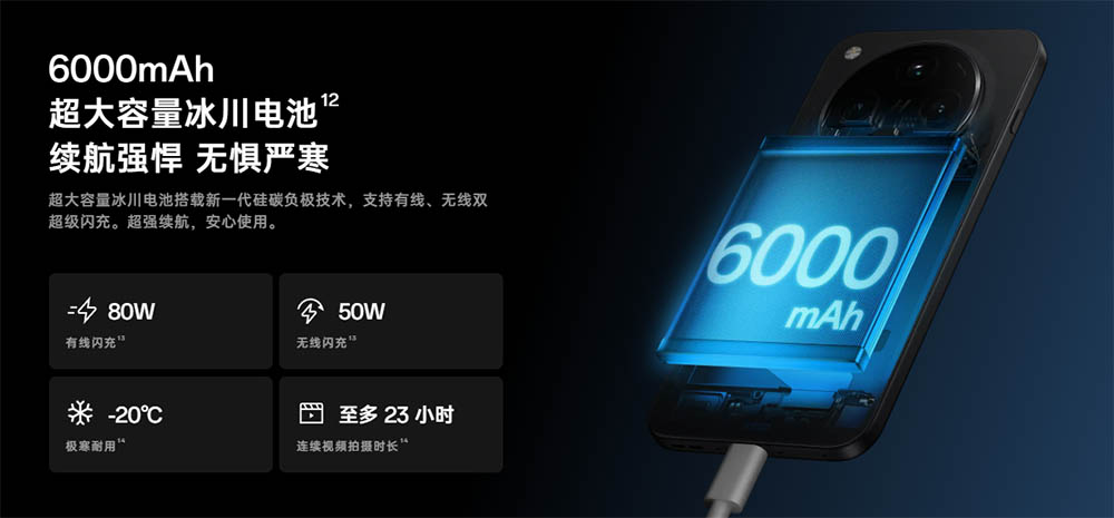 ▼バッテリーは6,000mAh。23時間の連続動画視聴が可能とのこと。↓